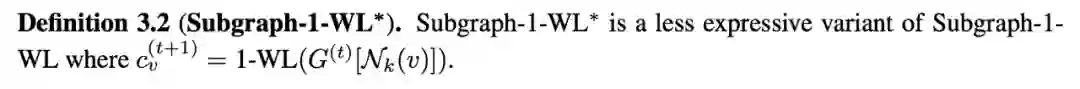 实现的途径是将 MPNN 模型中的星状图替换为如 k-egonets 的子图结构。即某结点的表示将通过其导出子图而不是与其直接相连的邻居所组成的子图(即星状图)来计算。本文通过理论证明,GNN-AK 表达能力强于 1&2-WL,不弱于 3-WL。