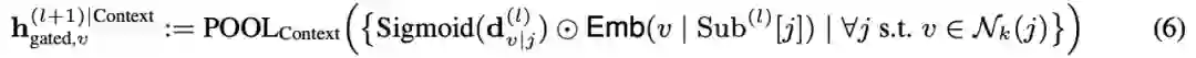 提出了 context encoding,将结点 v 所在的所有根结点不同的子图的 embedding 整合成 multiset,用 POOL 函数计算得到 v 的表示。