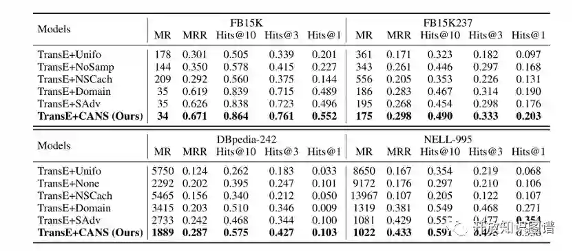 通过CANS得到的负样本,训练KGE来学习实体和关系的表示。使用的损失函数如下: