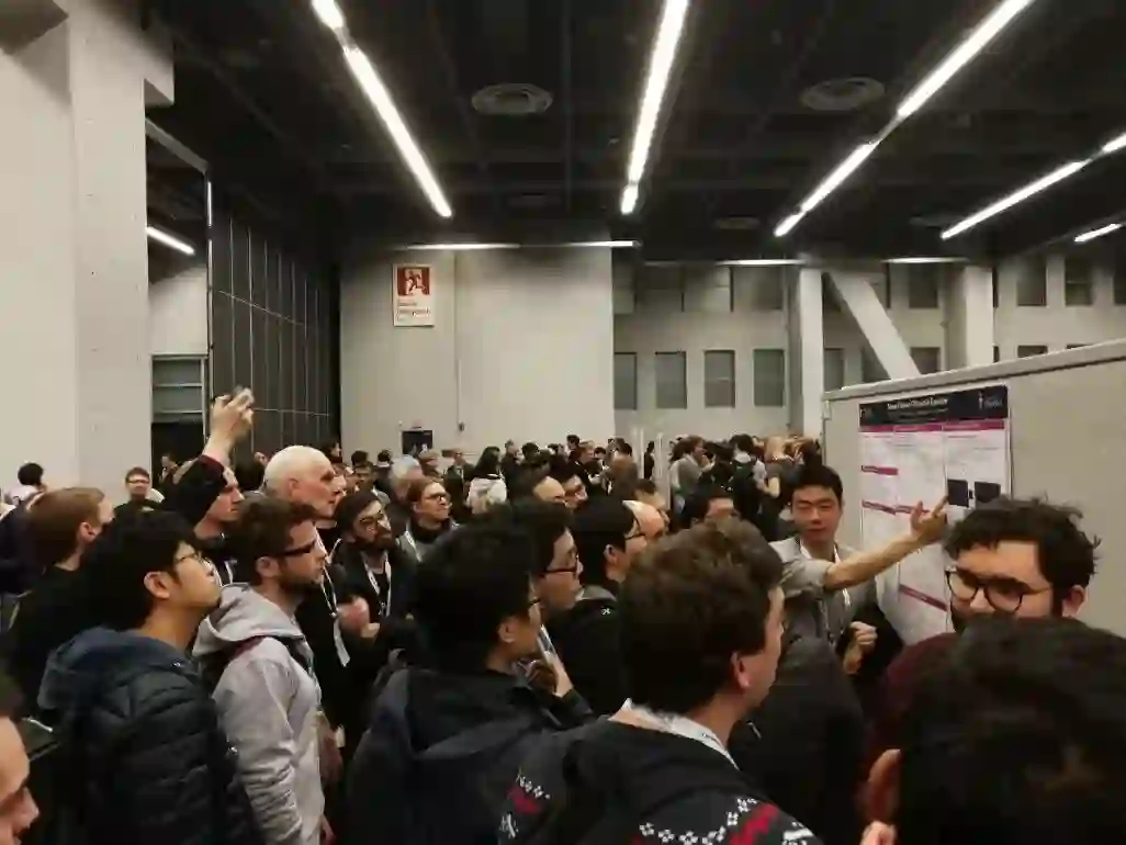 NeurIPS会议的Poster展示一共有六场。今天是Poster展示的第一天,大家的气势也格外高涨,每个展板前都聚满了交流的人群。每场展示的时间是两个半小时,不论对于讲解的人还是对于参观的人,这都是一场体力与脑力的双重考验,但是各路大神也都不惧艰辛,乐此不疲。