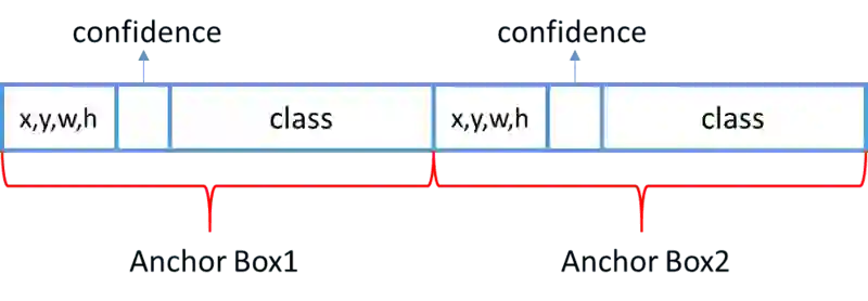 Anchor Boxes:Yolo 把全连接层 reshape 成 7×7×30 的特征进行方框预,这会导致空间信息丢失,造成方框定位不准。Yolo2 使用 Faster R-CNN 中的 anchor 思想,进行方框位置预测。并且一一对应类别的预测与每个方框位置的预测,如下图所示: