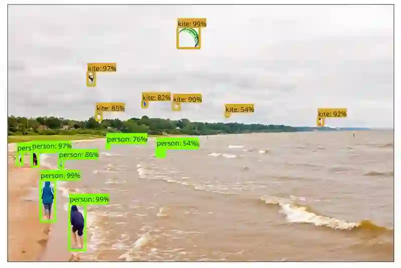 目标检测是计算机视觉和模式识别的重要研究方向,主要是确定图像中是否有感兴趣的目标存在,并对其进行探测和精确定位。最早的目标检测系统主要应用于雷达信号研究,从随机、充满干扰和噪音的信号中,提取有用的特征信息。例如,对一段随机的雷达回波设置一个阈值,当提取的特征信息高于这个阈值,就认为是检测到了飞行器之类的目标。传统的目标检测流程采用滑动窗口进行区域选择,然后采用 SIFT、HOG 等方法进行特征提取,最后采用 SVM、Adaboost 进行类别判断。但是传统的目标检测方法面临的主要问题有:特征提取鲁棒性差,不能反应光照变化、背景多样等情况;区域选择没有针对性,时间复杂度高,窗口冗余。本文主要讲解基于深度学习的目标检测模型(Faster RCNN,Yolo 和 Yolo2,SSD)及 TensorFlow 目标检测源码架构。使用 TensorFlow 目标检测框架,对图片中的物体进行目标检测,示例如下图所示:
