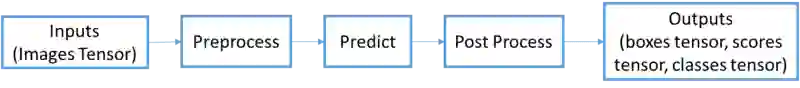Evaluation 流程如下所示,Preprocess 和 Predict 同上。Post Process 主要把预测得到的 Box 进行处理(如进行最大值抑制)并转换为最后要输出的格式,如 Box 位置的绝对坐标,Box 得分以及类别信息。