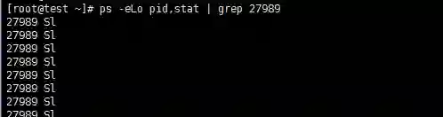 其中ps -eLo pid ,stat可以找出所有线程,并打印其所在的进程号和线程当前的状态;两个grep命令分别筛选进程号和线程状态;wc统计个数。其中,ps -eLo pid ,stat | grep 27989输出的结果如下: