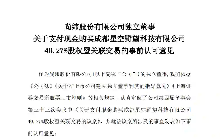 11 月 8 日, 电缆上市企业尚纬股份发布公告称,拟以自有及自筹资金不超过 5.89 亿元收购成都星空野望科技有限公司 40.27% 股权。