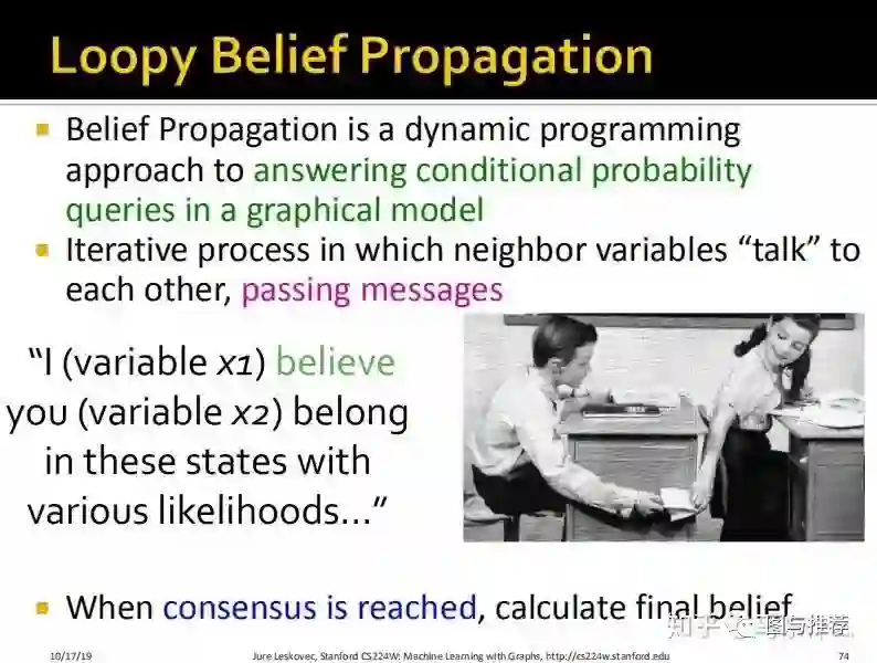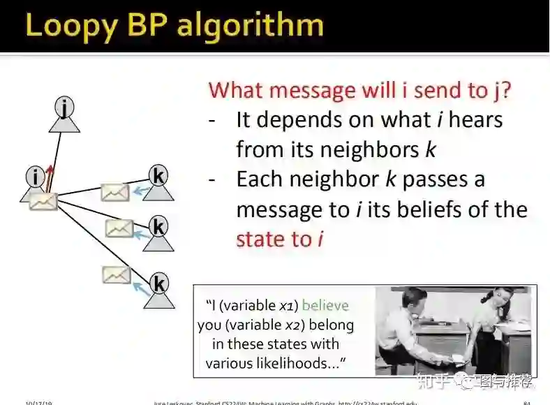 迭代过程中,相邻的节点的变量相互“交谈”,传递消息。(wtf)