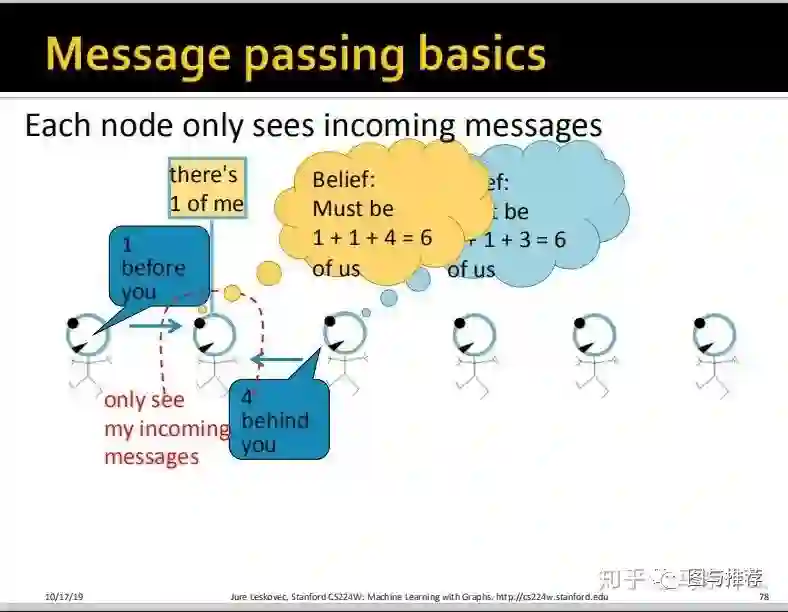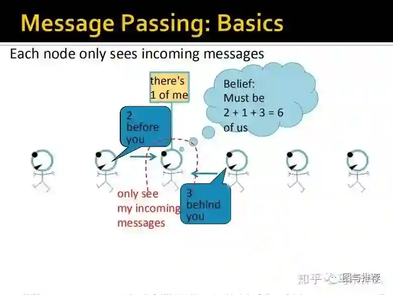 条件:每个节点只能与其邻居进行交互(传递消息)