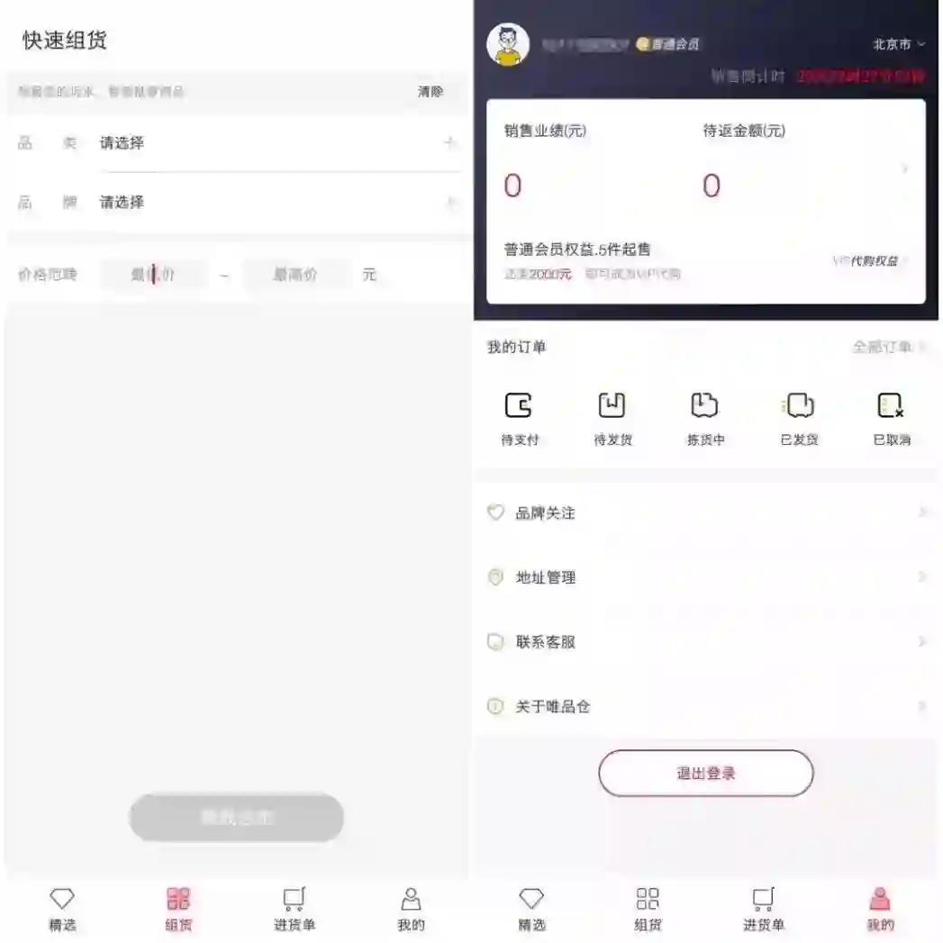 唯品仓首页“快速组货”服务