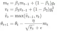 为了解决这个问题,作者提出了一种新的算法AMSGrad,它使用基于之前梯度平方的最大值而不是指数平均值来更新参数。没有偏差纠正估计的完整的AMSGrad更新如下所示: