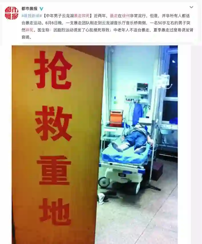 2014年某晚,徐州一支暴走团正在暴走,突然之间,团内一名50岁左右的男子,倒地不醒。