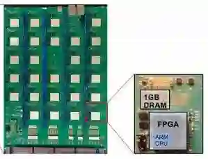 每个节点均有一个Xilinx Zynq单片系统(一个双核ARM A9处理器与一个FPGA在同一芯片上配对)以及1GB专用RAM芯片。