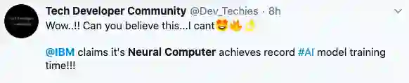 本周,IBM声称,其神经计算机系统达到了每秒120万帧的训练时间,创下了最新记录。IBM在AI模型训练上实现了大突破,可与最先进的技术相匹敌。网友对此表示简直不敢相信!