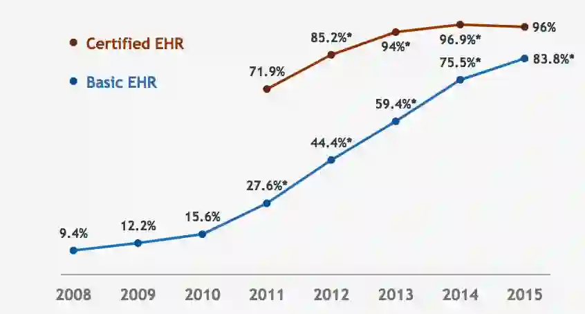 事实上,从上个世纪90年代开始,美国就开始推进医疗系统的信息化,尤其是电子病历的普及。虽然波折重重,但是在2015年,还是取得了里程碑式的成绩。