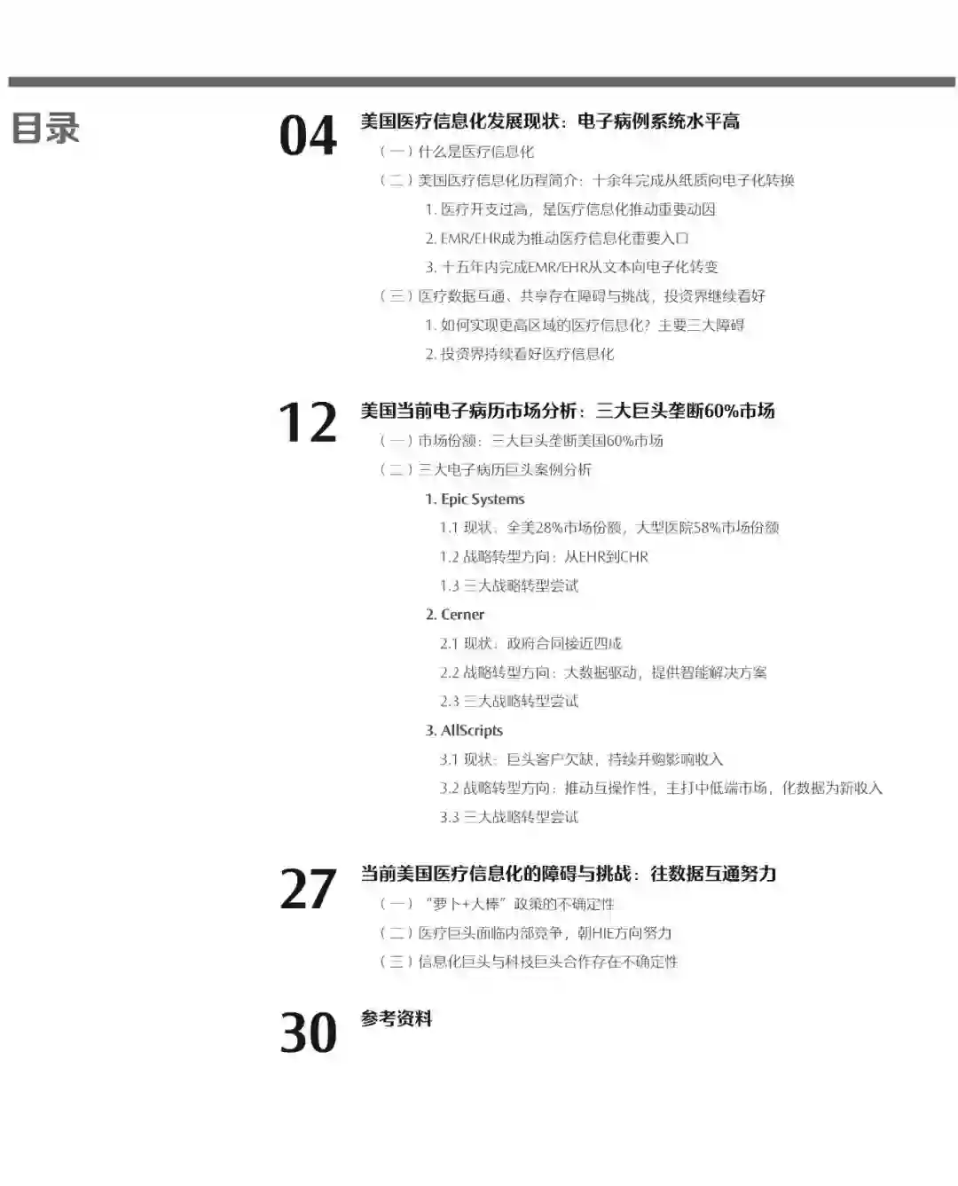 :对美国医疗信息化行业的三大巨头进行深度案例分析,着重关注其近期的战略转型。它们如何应用AI及大数据等前沿技术?如何借力与硅谷科技巨头的合作来推动自身战略转型?