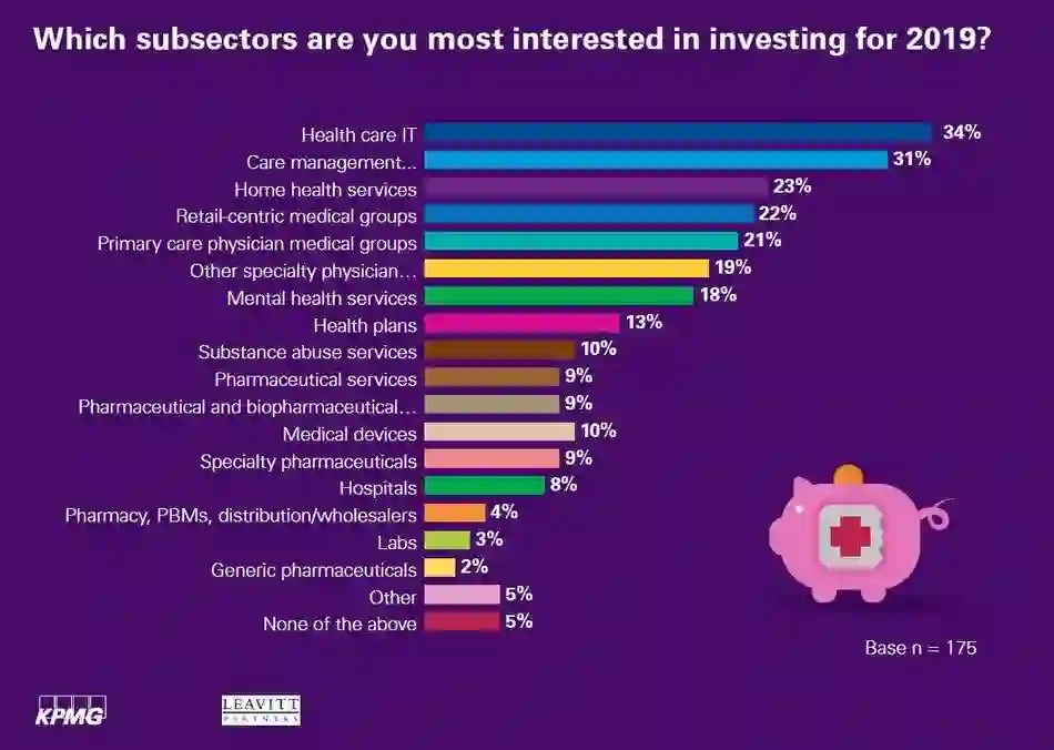 2018年底,毕马威和医疗保健情报企业 Leavitt 推出的《2019医疗保健投资专业人士投资展望》调查报告也显示,