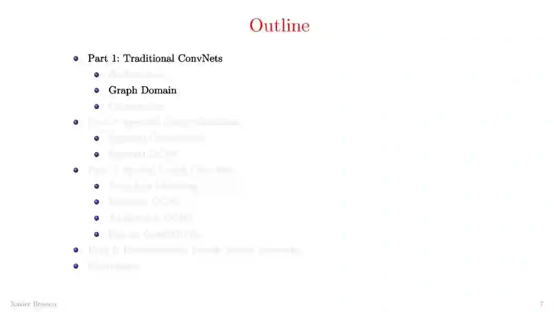 在本节中,我们将讨论传统卷积神经网络的结构和卷积。然后我们扩展到图域。我们理解了图的特征,并定义了图卷积。最后,我们介绍了频谱图卷积神经网络,并讨论了如何进行频谱卷积。