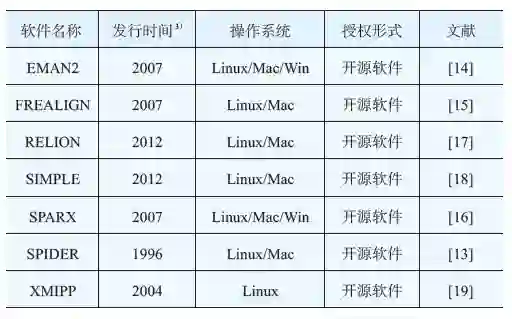 表1 冷冻电镜中流行的图像处理软件
