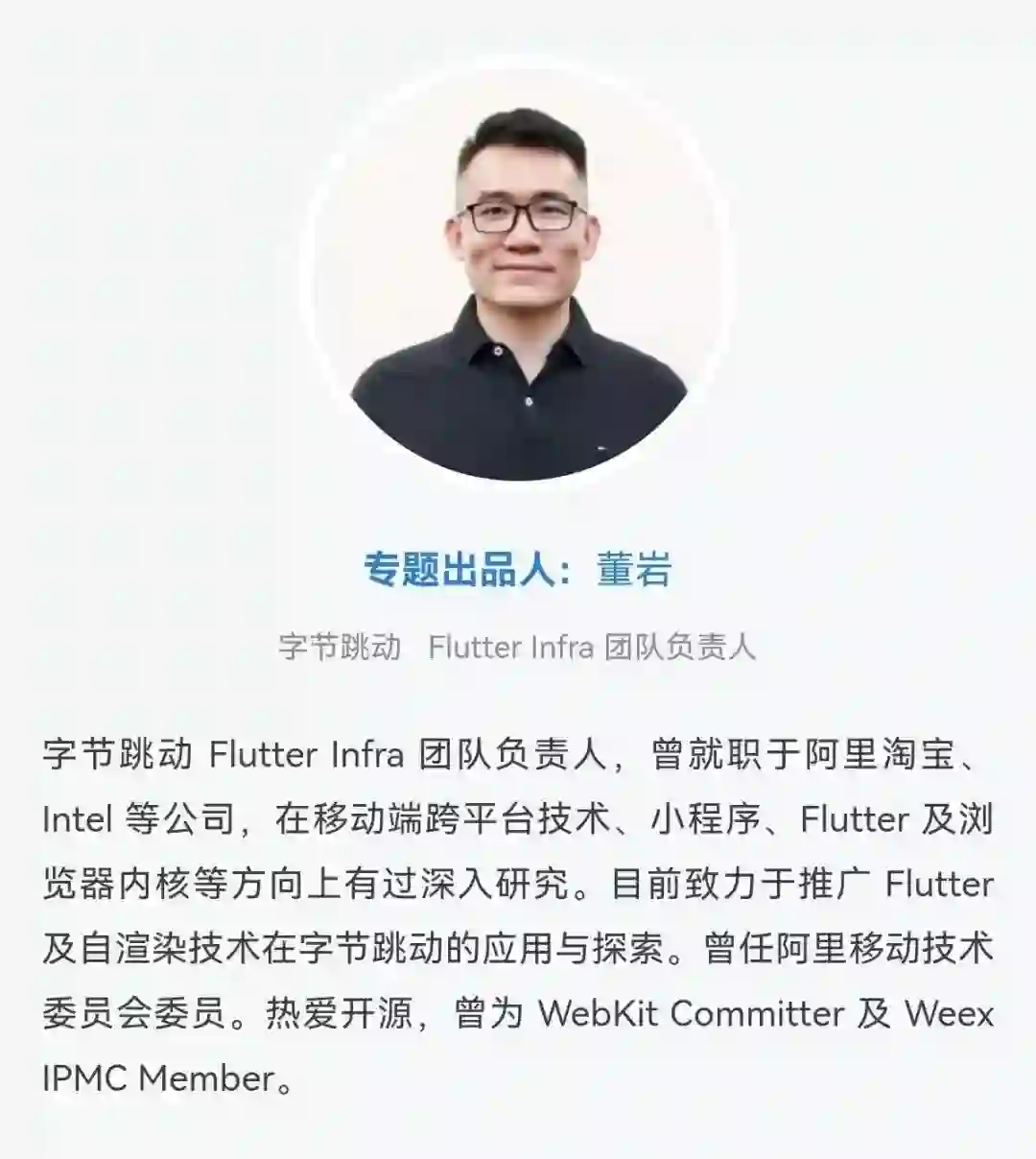 以上就是今年的 GMTC 北京站对于「跨端技术」专题的思考,我们邀请了字节跳动 Flutter Infra 团队负责人董岩担任出品人,为专题质量把关。他在跨端领域有多年实践经验,去年的 GMTC 北京站上,也贡献过高质量演讲。