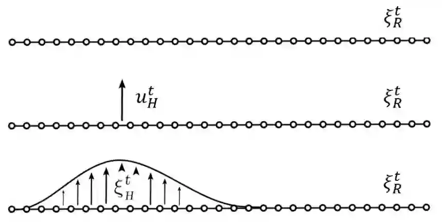 但是,人类的偏好轨迹 ξH 又是什么呢?机器人仅仅会直接测量人类施加的力 uH。一种用来推理人类偏好轨迹的方式是在机器人的当前轨迹上传播人类的力。图 1 建立了基于 Losey 和 O'Malley 之前的工作的轨迹形变,开始于机器人的原始轨迹,然后施加外力,然后施加形变以产生 ξH。