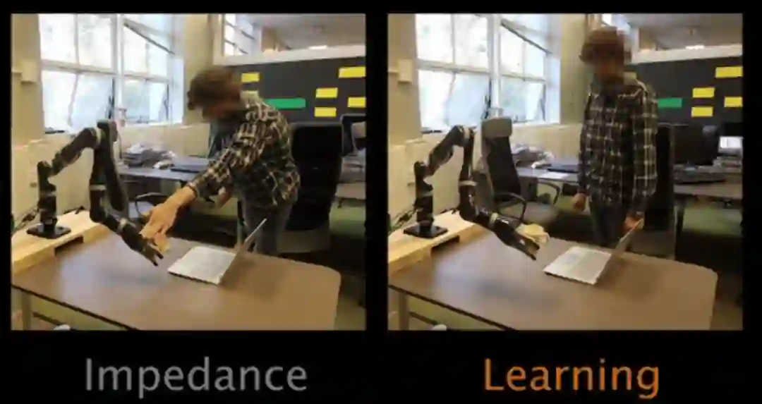 然而,再推敲一下我们刚开始就列举的第一个例子,即你在朋友快要撒掉饮料的时候扶住了他/她的手。现在假定你那位即将撒掉饮料的朋友(而不是你)是一个机器人。因为在目前最先进的机器人的规划和控制算法中,通常会将人类的物理干预视为外部扰动,一旦你放开机器人,它将恢复它那错误的轨迹,继续洒出饮料。这种差距的关键在于机器人是如何思考与人类之间的物理交互的:绝大多数机器人会在交互结束之后恢复其初始行为,而不是思考人类为什么根据需求对它进行物理干预并重新规划。