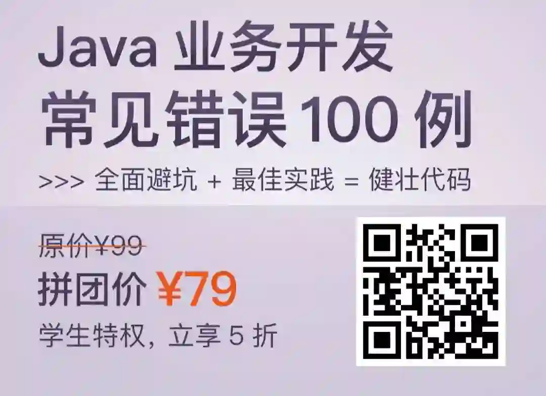 所以,他从自己接触过的 200+ 真实生产事件和事故中,整理提炼了 100 个 Demo,涉及 130 个坑点和 50 个最佳实践,都在他的专栏《Java 业务开发常见错误 100 例》中了,实不相瞒,这些坑我自己都踩过不少。
