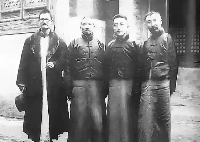 1920年3月14日,蒋梦麟、蔡元培、胡适、李大钊合影