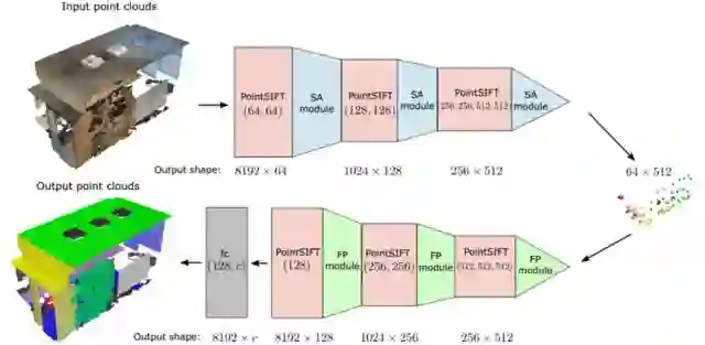 基于 pointSIFT 嵌入的点云分割网络 SA 和 FP 分别为编码器 (Set Abstraction) 和解码器 (Feature Propagation) 模块
