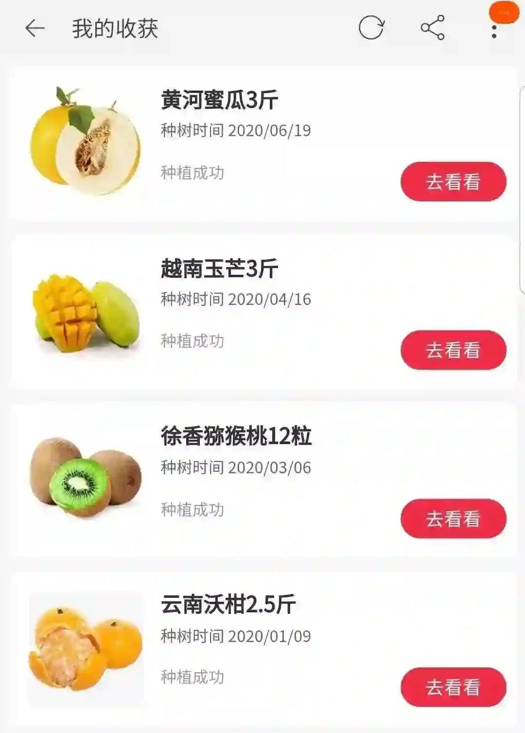 在一个月到半年的时间里,平台的规则类似,签到、浏览、购物、分享就可以兑换水滴/化肥,水滴/化肥浇灌果树的成长,最后果树成熟,收获水果。