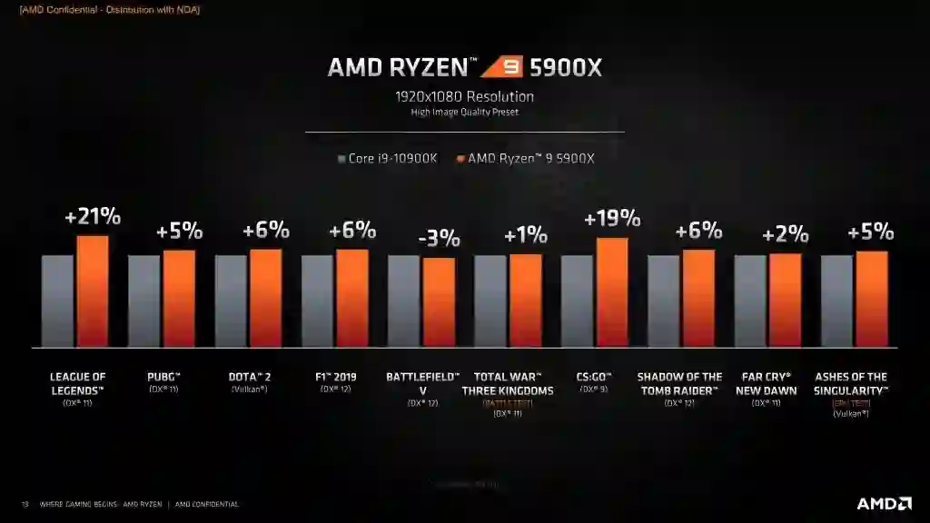 AMD Ryzen 9 5900X 专为游戏而生,可以将游戏性能提升 26%。AMD 表示,新款 Ryzen 5900X 是“世界上最好的游戏 CPU”。