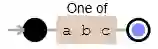 模式 [abc] 的可视图如下,注意 “One of” 是说集合里面的字符是“或”的关系。