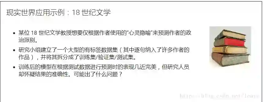 Google 工程师与一位研究十八世纪文学的教授合作,开发了一个“心灵隐喻(the metaphors to the mind)”数据库,记录了十八世纪所有的文学作品中关于“心灵”的隐喻的句子,比如“心灵是一座花园”“心灵是一块白板”。这位教授想了解是否能从这些作者使用的隐喻中得知他们的政治派别。