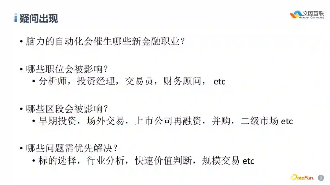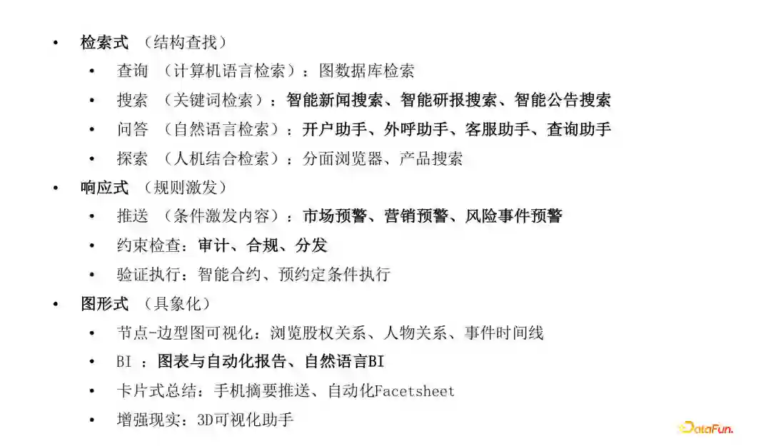 知识图谱的标准件已经全面赋能主流的金融城,包括监管、资管、保险、银行、证券和各种通用的这种领域里,现在都有相对成熟的金融制度的应用。未来到底是什么样,这其实是一个左右互搏的过程。