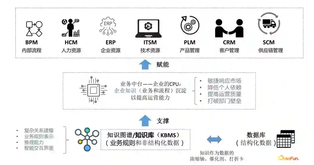 企业一直在做数字化转型,数字化转型的本质是企业都要一个CPU,上面都是各种核心的业务系统,包括BPM系统和ERP系统、CRM系统。传统企业的IT系统底层都是数据库,未来企业一定会发生巨大范式变迁,企业的核心资产是流程知识和业务知识。过去五年时间,我们看到金融企业在财务的知识、审核的知识、信贷的知识、风控的知识,都在不断的去沉淀。