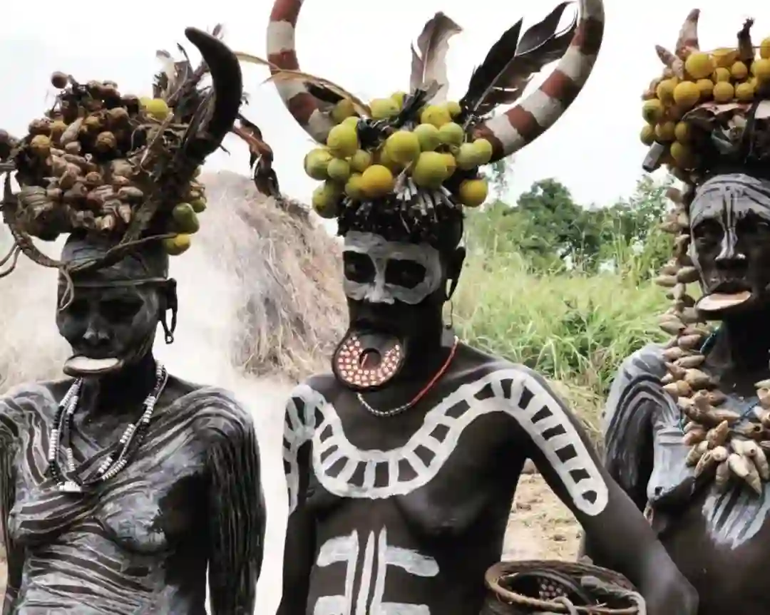 2018 年 7 月,埃塞俄比亚南部。非洲原始部落散落在非洲各个地方,盘唇族便是其中的一个。几个当地部落妇女打扮了起来,用她们最原始的方式。