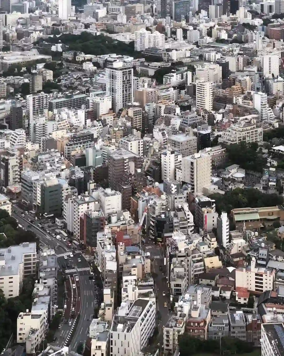 2018 年 6 月,日本东京。站在森美术馆俯瞰东京,东亚密集型城市的典型代表,错落有致高低不一的楼房密集的插在土地上有几分美感。
