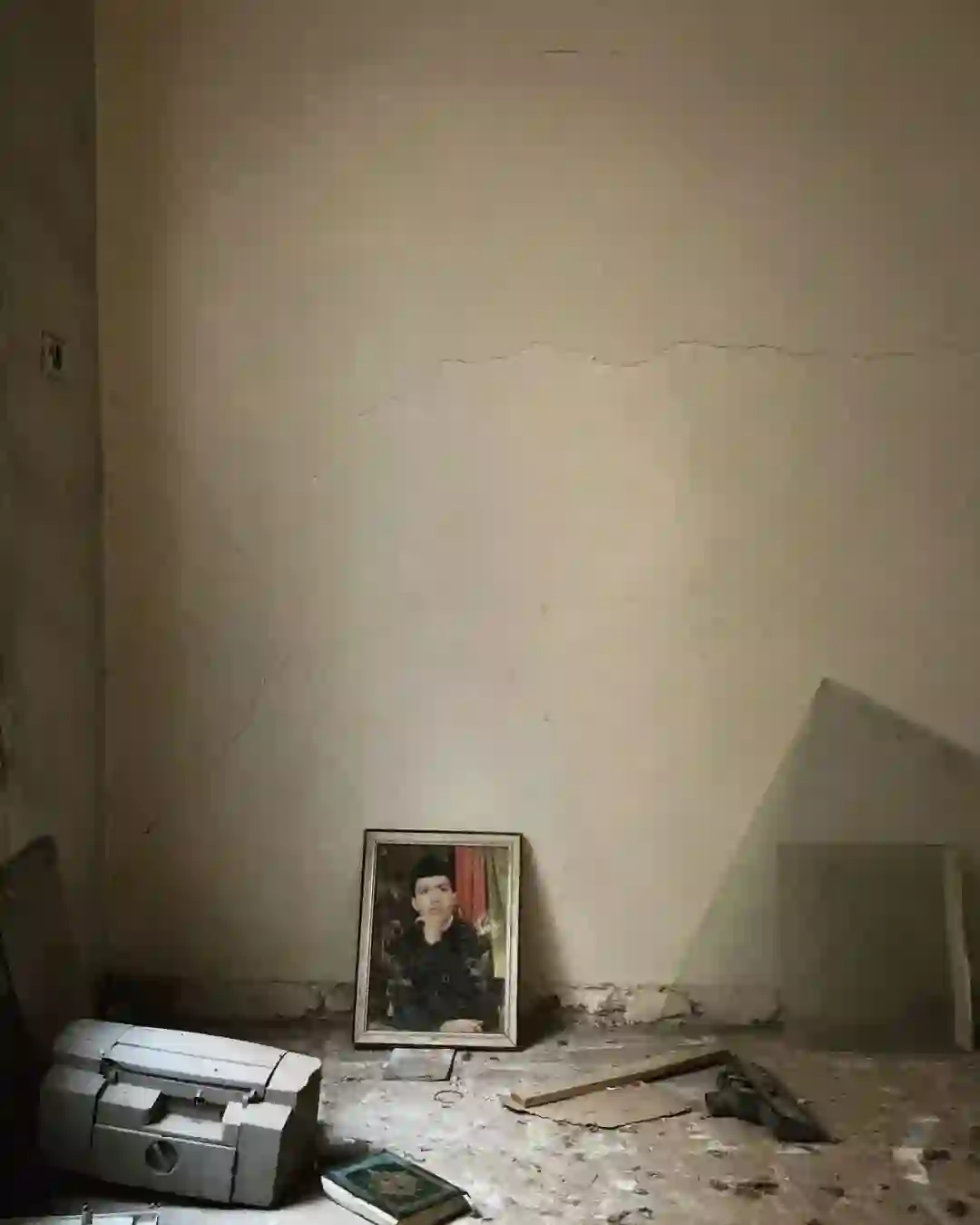 到了阿勒颇我被深深震撼住了,在废墟之间游走了四天,拍摄了很多照片。进入一个空房间时看到了一张摆在地上的男孩的写真照片,我就特别有冲动将它拍摄下来。
