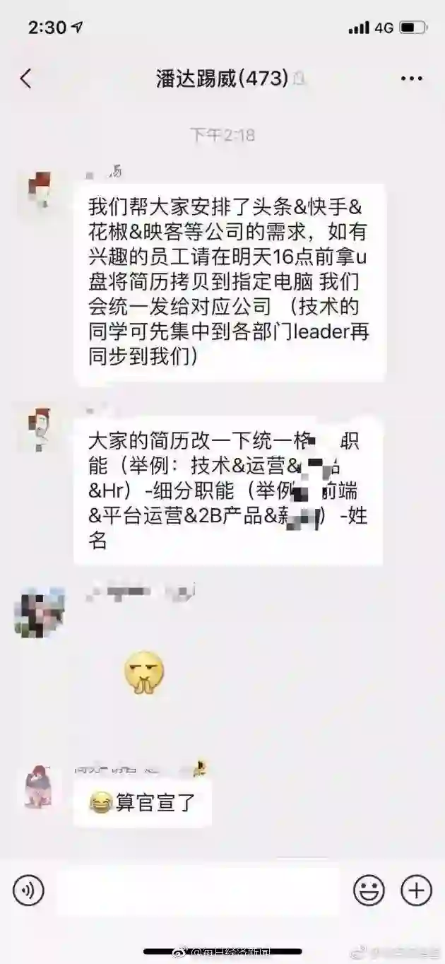 网传熊猫 CTO 张菊元的助理,在公司内部群说,已经给员工安排好了内推。