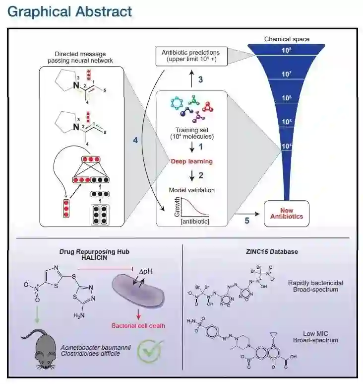 从超过 1.07 亿种分子中识别出了强大的新型抗生素分子——halicin