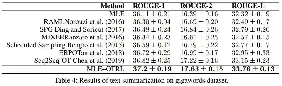 就 Rouge-1、Rouge-2 和 Rouge-L 三项评估指标而言,本文提出的模型在 gigaword 测试数据集上均获得最高分(文本摘要任务)。
