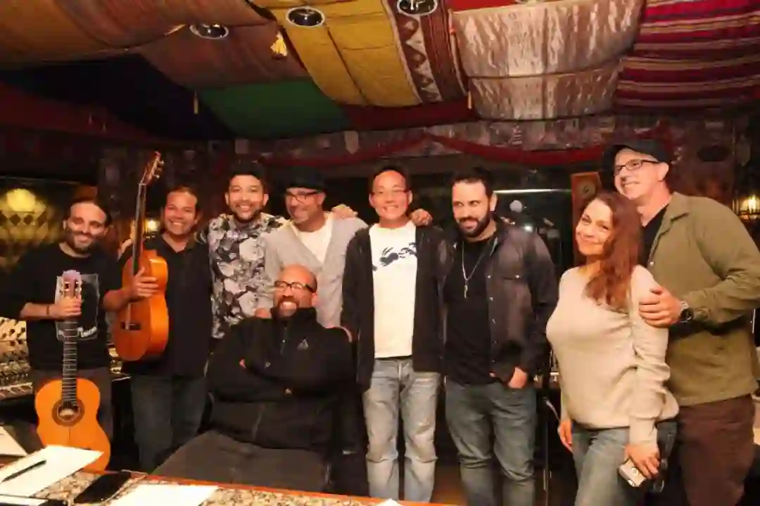 叶云川(右四)和吉普赛音乐家工作照