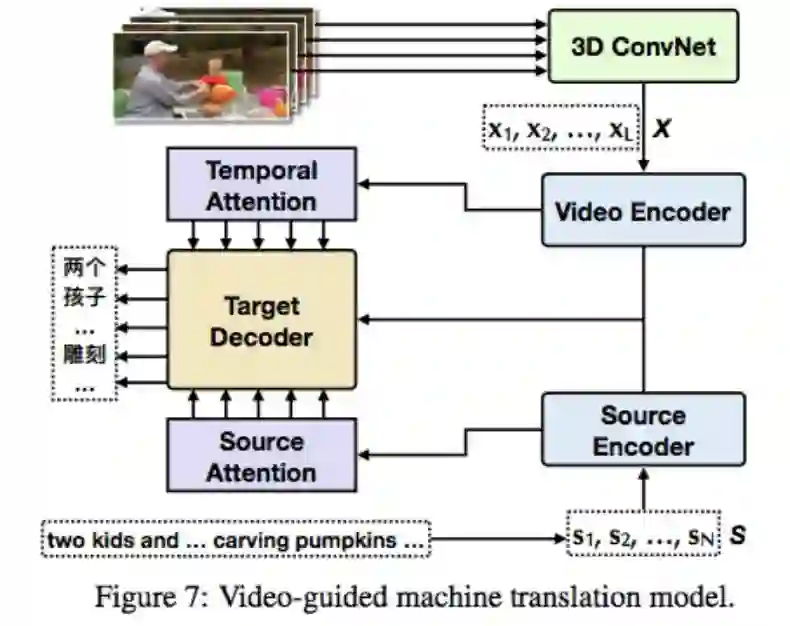 视频辅助的机器翻译 (VMT),即将视频信息作为时空语境帮助将源语言句子翻译成目标语言。该任务在很多现实世界应用,如翻译社交媒体中带有视频内容的帖子。