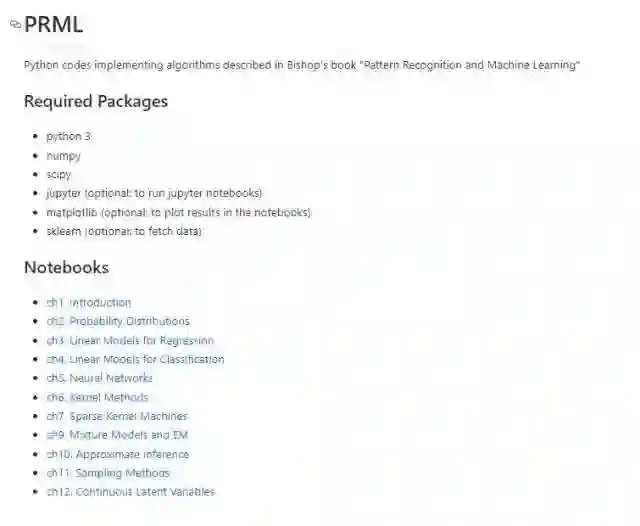 编者按:PRML是公认的经典机器学习教材,官方已经在去年将这本书英文版开放下载:《模式识别与机器学习(PRML)》正式开放免费下载 。2014年哈工大马春鹏博士利用业余时间翻译过这本书,之后这本中译本广为流传。另外在2015年,微博上的一群同学组织了PRML的读书会,读书会的相关笔记也发布在了“我爱自然语言处理”的博客上:http://www.52nlp.cn/author/prml 。原计划将这些资料一并整理,后来发现AIQ社区的这篇文章总结的非常全面,已经无需我写什么了,所以转载至此,文末留有原文链接。如果你需要这些资料,也可以关注以下公众号并回复“PRML”获取相关资料链接: