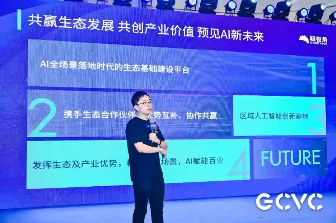 会上,极视角创始人兼CEO陈振杰发表《携手探索.预见AI新未来》主题致辞。