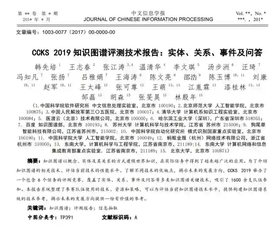 后台回复“CKG” 就可以获取《CCKS 2019 知识图谱评测技术报告:实体、关系、事件及问答》论文专知下载链接