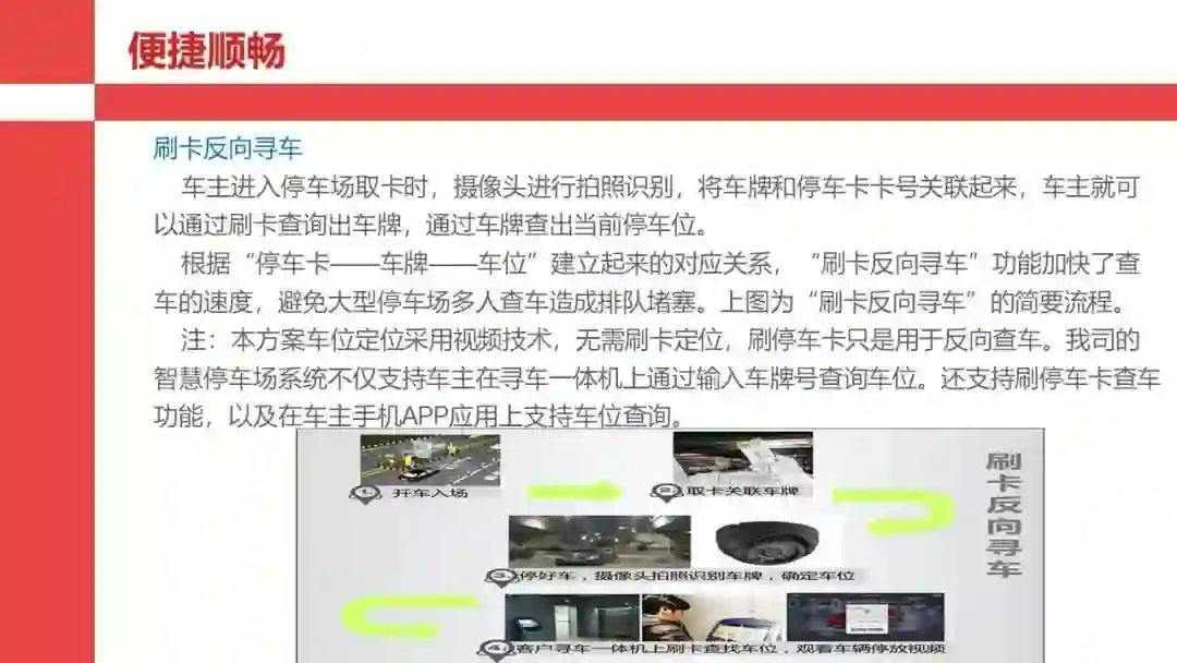 智慧停车是相对于刷卡和人工收费停车而言,比如一点停车系统,可以采用视频采集功能,和手机APP的线上查询和支付等功能,在停车的整个过程,都实现自动化和智能化管理和服务。