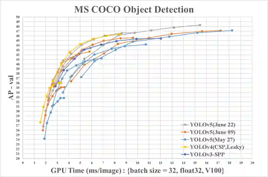 之前很多公众号根据国外的一篇有bug的博客,直接翻译过来无脑吹"YOLOv5"有多强(啥速度超两倍),看的我一愣一愣的。我觉得YOLOv4性能更强,后续会专门推一篇关于YOLOv4和"YOLOv5"的文章,敬请期待!