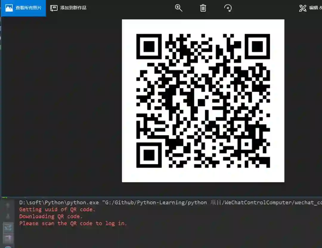 首先你把相应的源码下载下来,后台回复「表白」即可获取。其次把相应的库先事先安装好,随后运行程序则会显示一个微信网页登录的二维码,扫描登录即可。