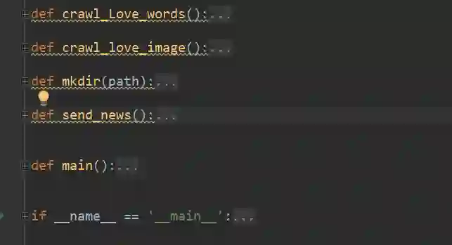 main() 函数就是我们主逻辑函数,程序运行的逻辑顺序就是在这个函数里规定的。在 main() 里我首先判断下当前路径下是否有「love_word.txt」文件,如果有则提示相应的信息,没有的话才去执 crawl_Love_words() 函数,去网上抓取一些情话数据。