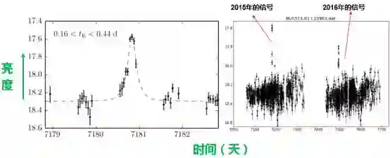 虽然MOA和OGLE宣称其观测到了几十个流浪行星的候选者,然而,这些短时标事件也可能根本不是由微引力透镜效应引起的。微引力透镜事件的典型特点是其(几乎)不会重复发生,而由其它因素导致的恒星自身亮度变化一般都是会重复的。但由于恒星自身亮度的短暂变化很难被再次捕捉到,这就可能让我们误以为亮度变化是由微引力透镜效应引起的。典型的例子就是OGLE-2015-BLG-1278事件,它的“时标”不到1天,但是2016年的跟踪观测发现了重复的信号(如图7),才让我们意识到这并不是一个微引力透镜事件。