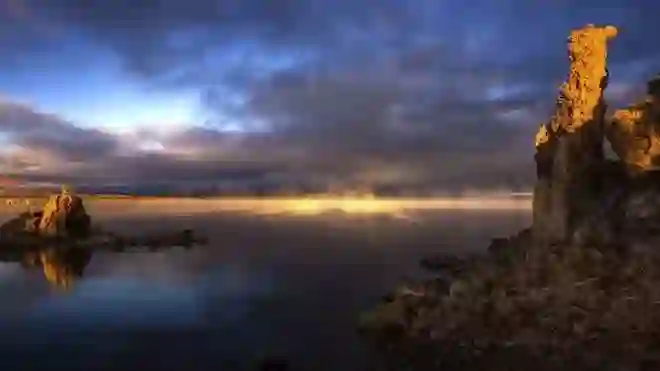加里福利亚莫诺湖的日出场景,莫诺湖是一个酷热、缺氧、富砷的湖泊,科学家们认为这很像早期的地球